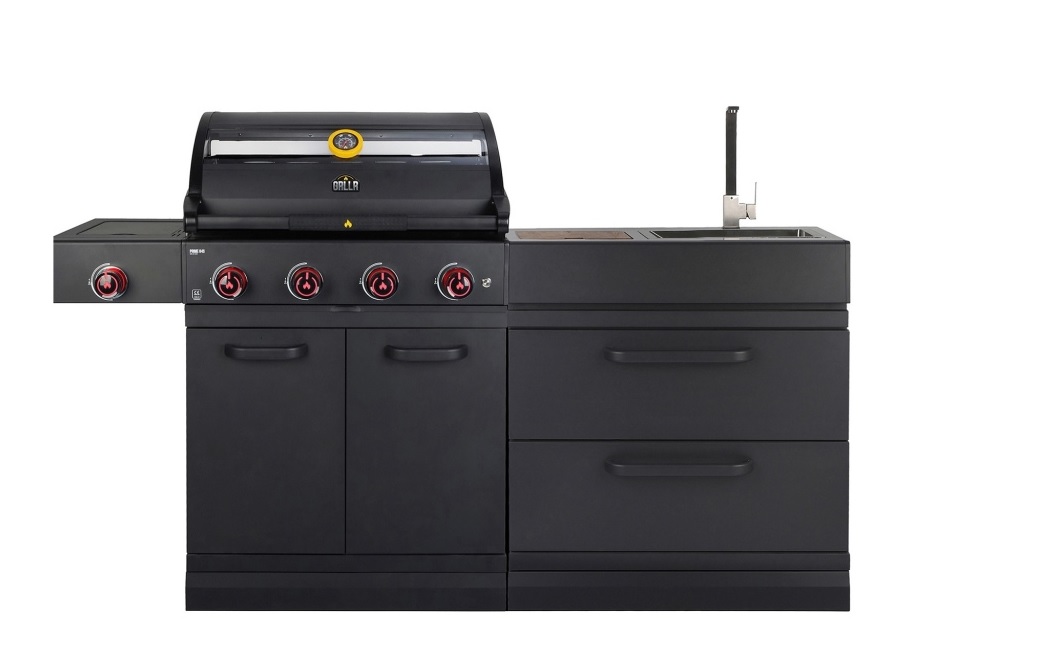 מטבח חוץ מודולרי 4 מבערים GRLLR PRIME + כירת צד ויחידת כיור מבית המותג GRLLR