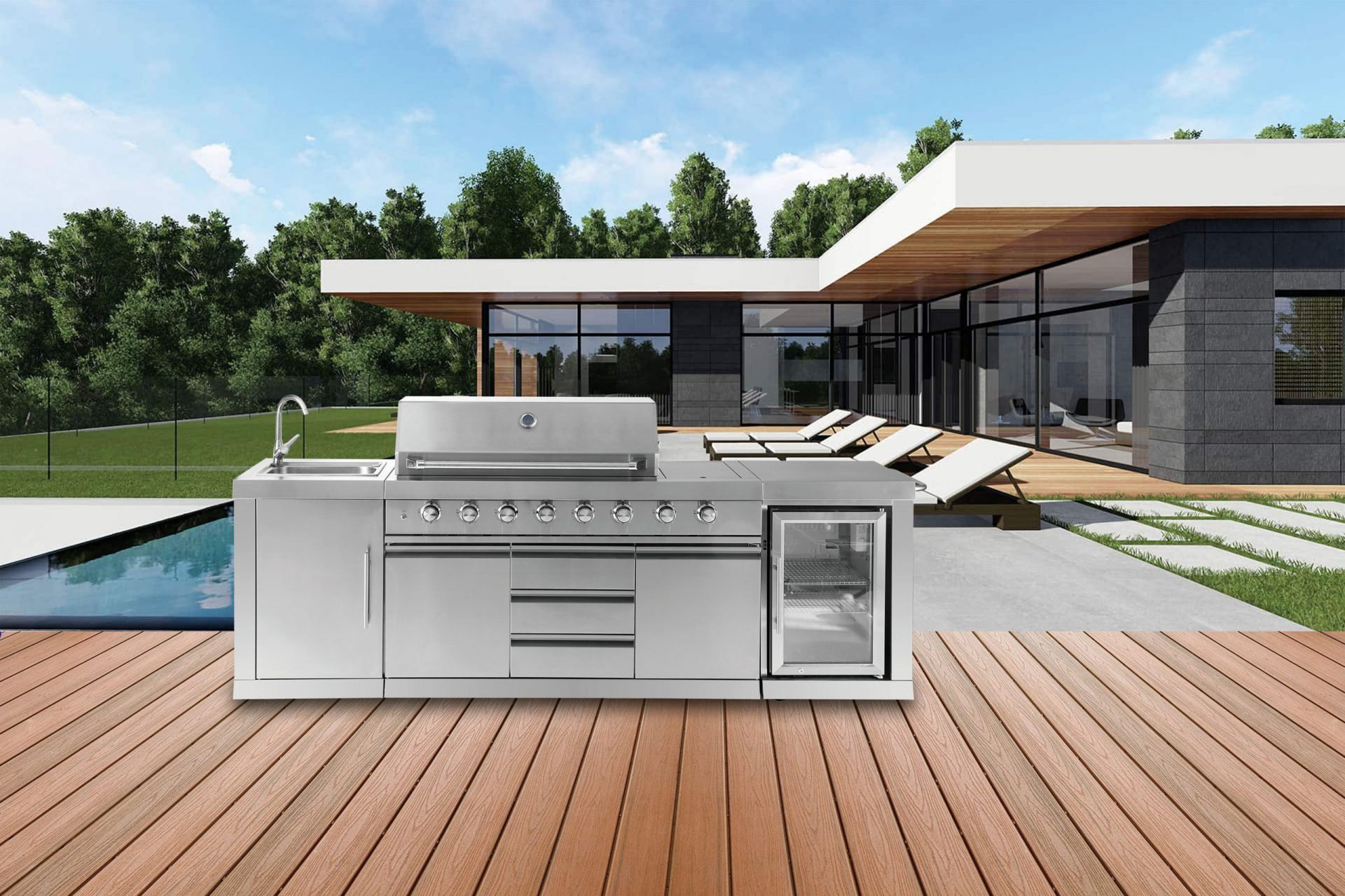 מטבח חוץ דגם Dallas, מטבח חוץ עוצמתי , גדול ורב תכליתי הכולל את כל מה שצריך לאירוח ובישול בחצר או בגינה