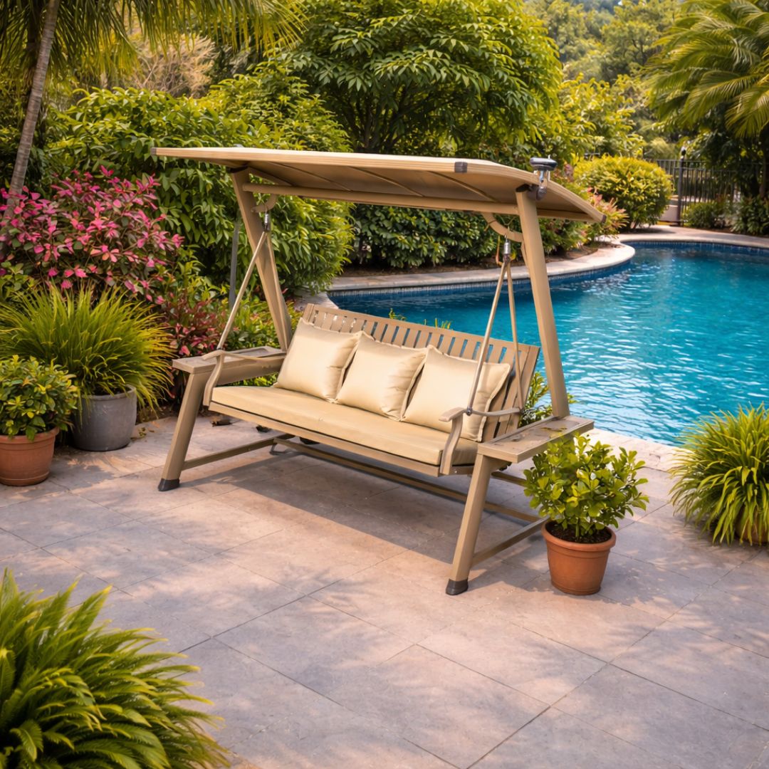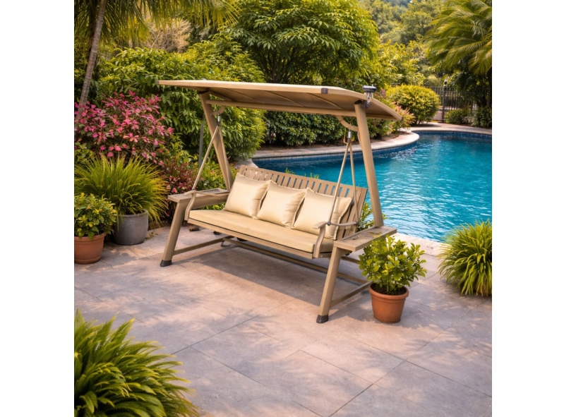 נדנדה לגינה מאלומיניום דגם לקסוס תלת מושבי
