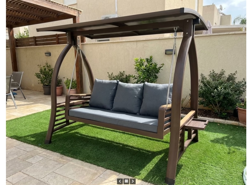 נדנדה לגינה אלומיניום דמוי עץ דגם פיראוס