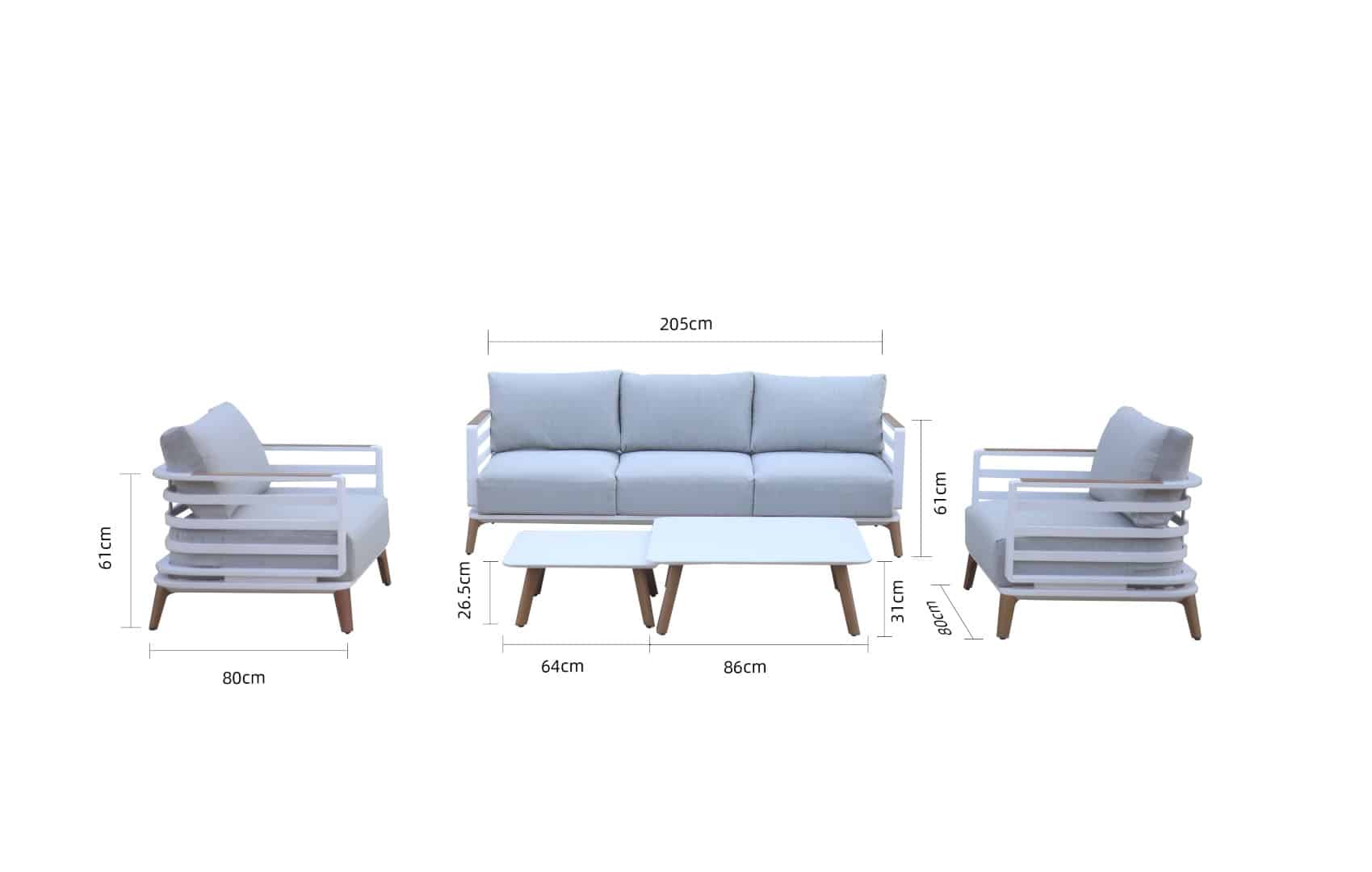 סט ישיבה אלומיניום דגם טורונטו צבע לבן