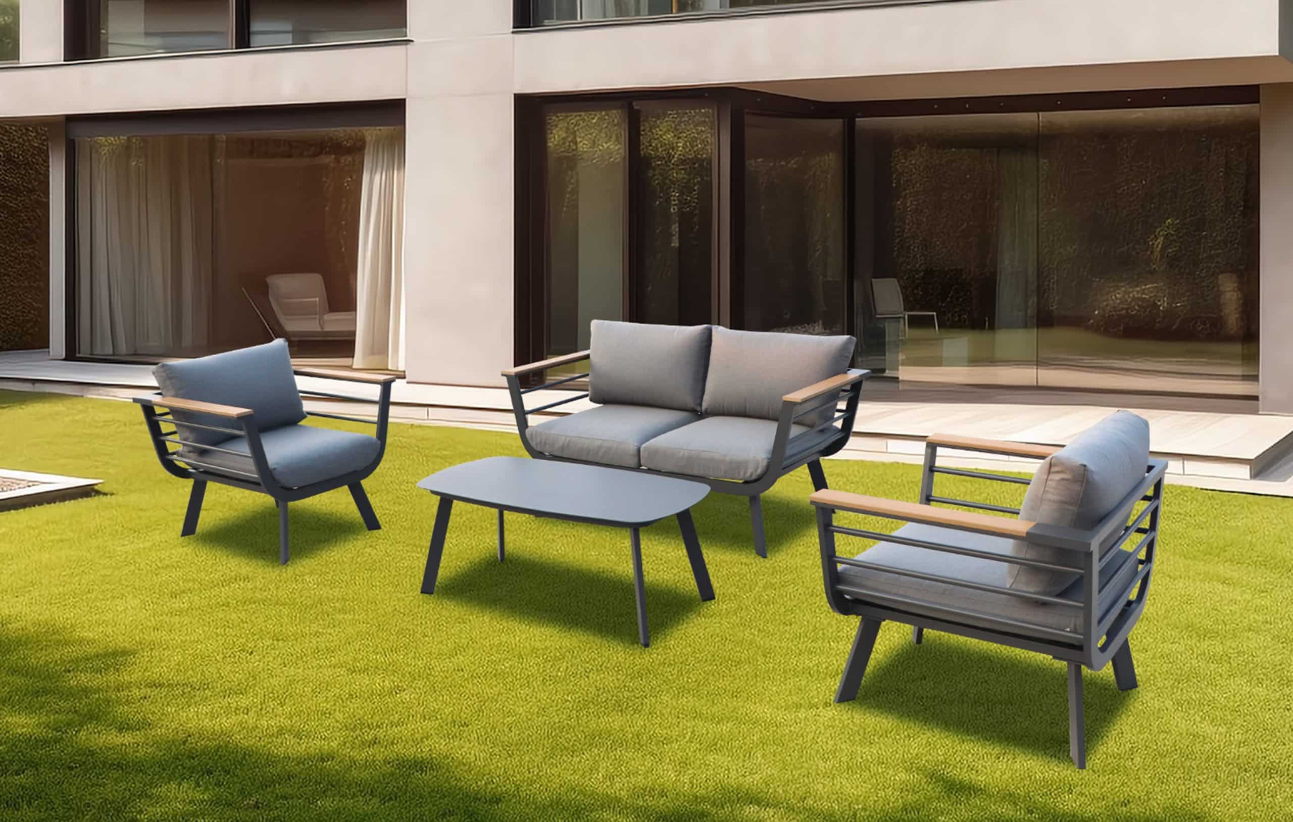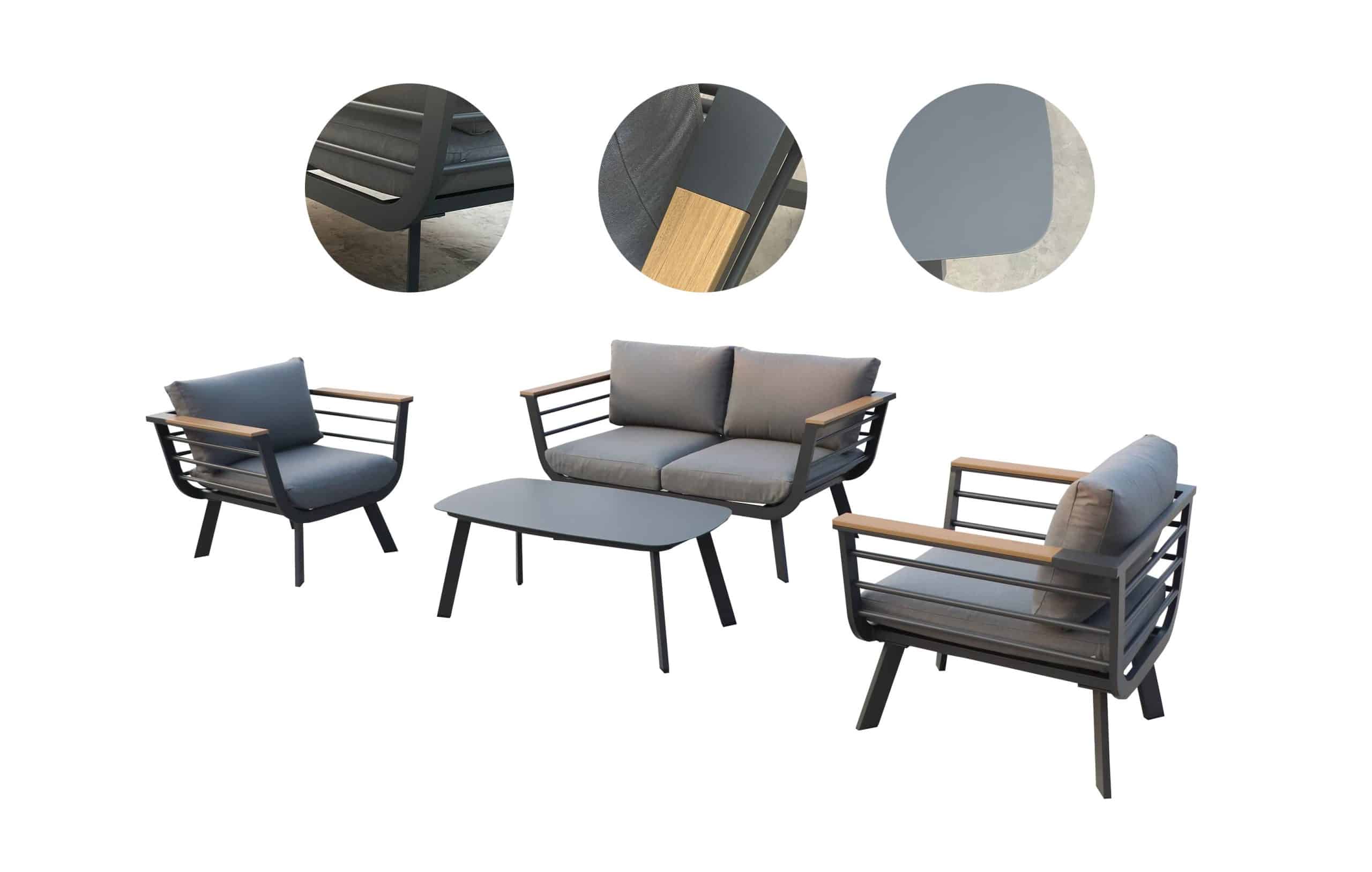 סט ישיבה אלומיניום דגם פלמה דו מושבי אפור