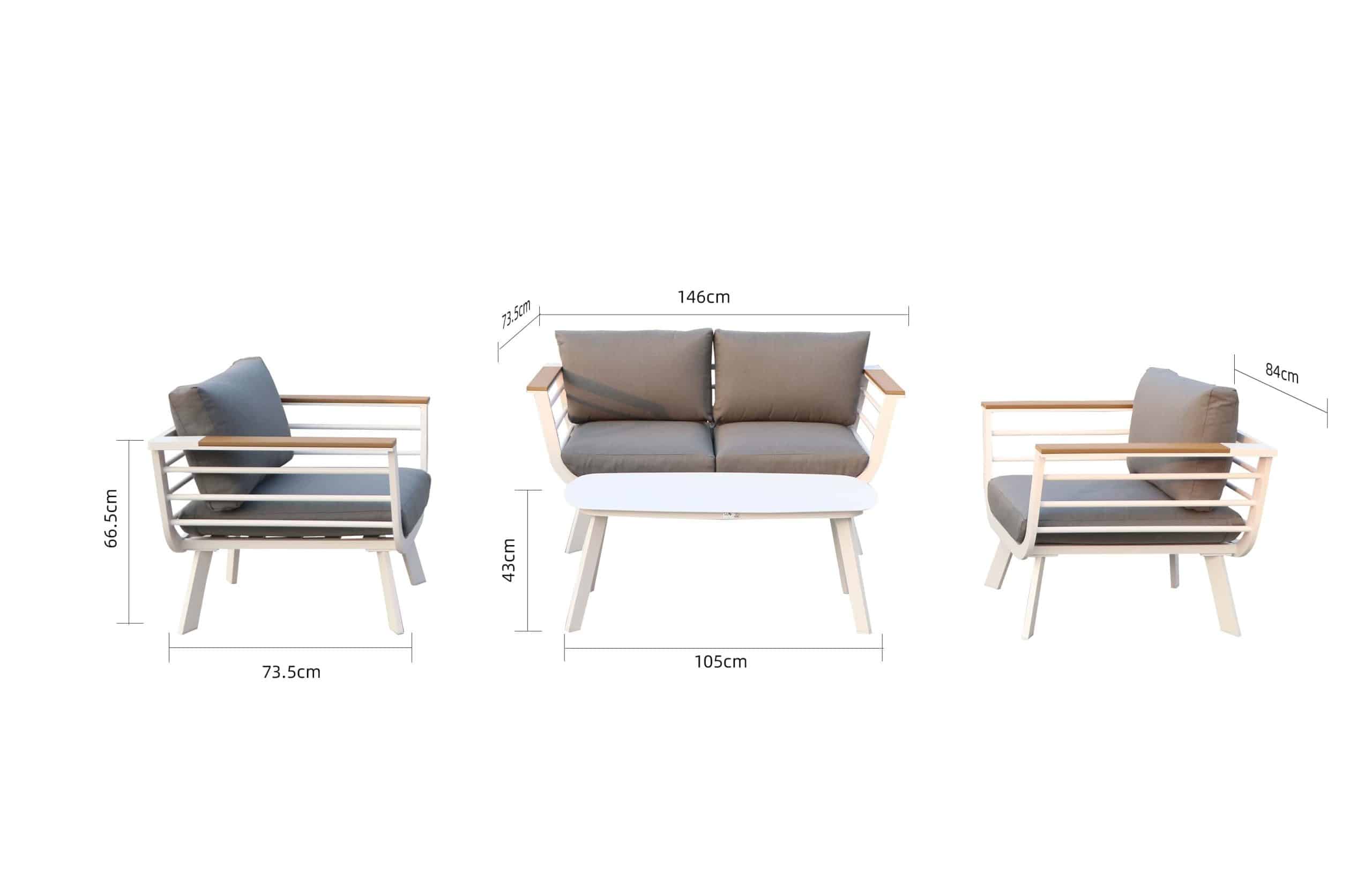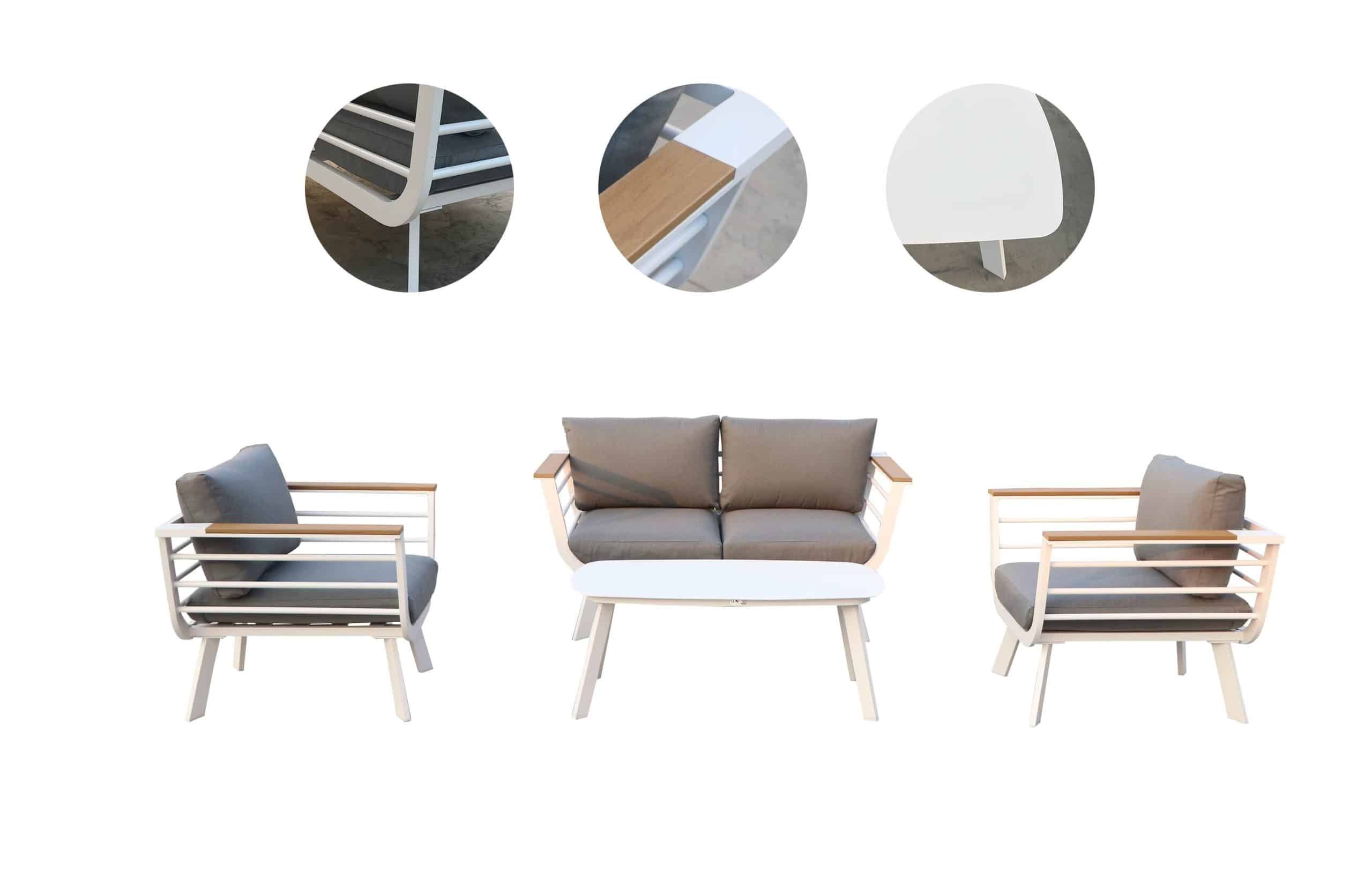 סט ישיבה אלומיניום דו מושבי דגם פלמה לבן