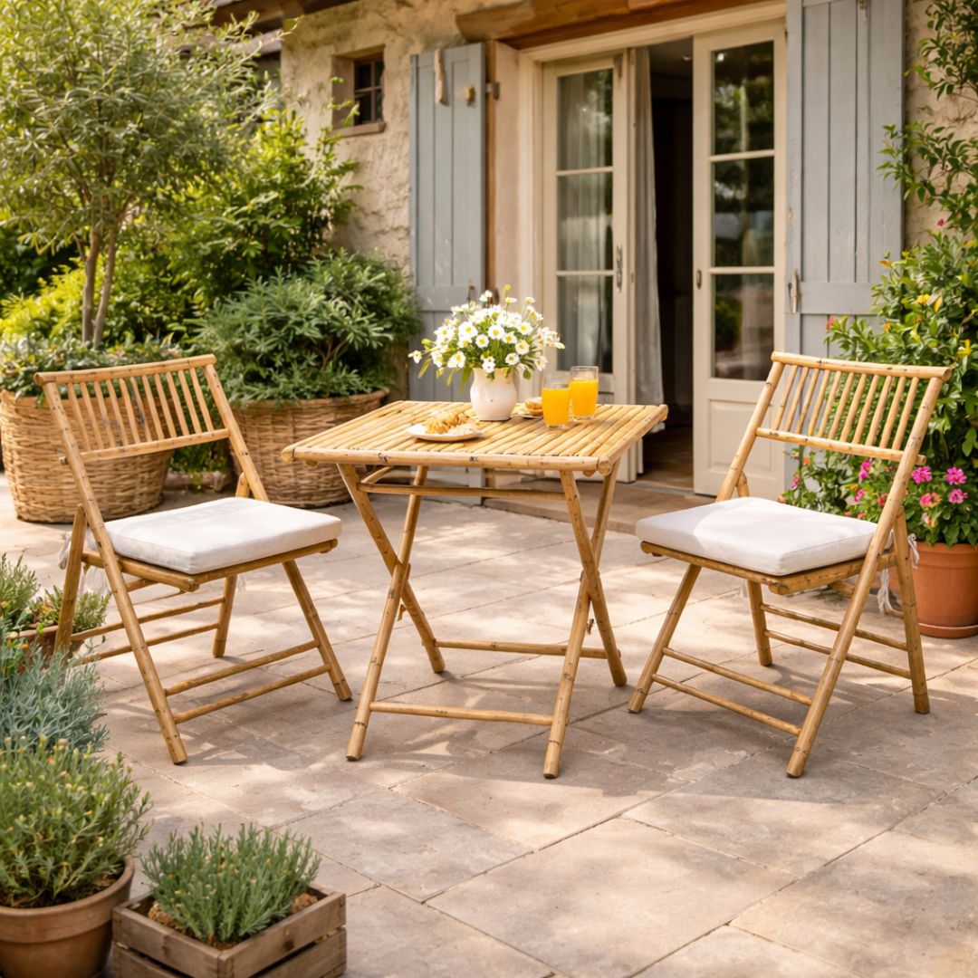 הסט עשוי במבוק טבעי, המעניק מראה חמים, טבעי ועל־זמני, ומשתלב בקלות בכל סגנון עיצוב