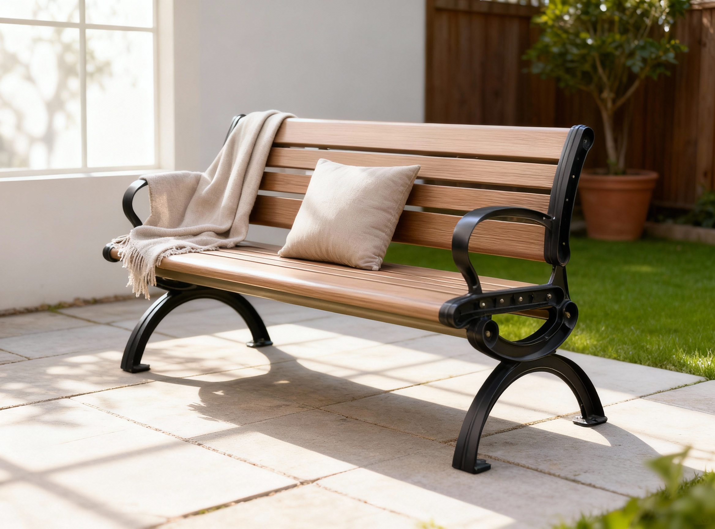 ספסל ישיבה מאלומיניום דגם רומי דמוי עץ
